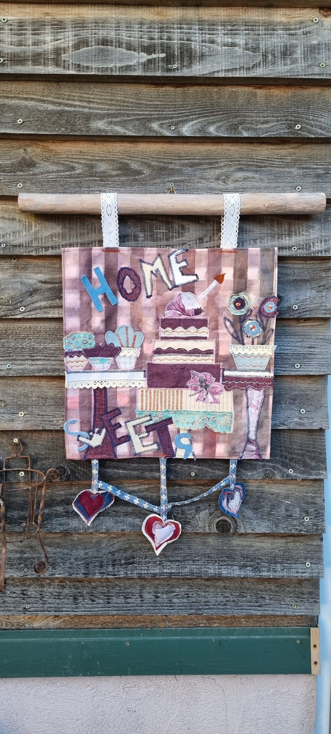 Stiu ca nu agreeaza foarte mult ideea decupajelor textile, dar, spre surprinderea mea, i-a placut, aducandu-i zambetul pe buze! A ‘dat vina’ pe nuantele folosite in compozitie, nuante pe care le adora!