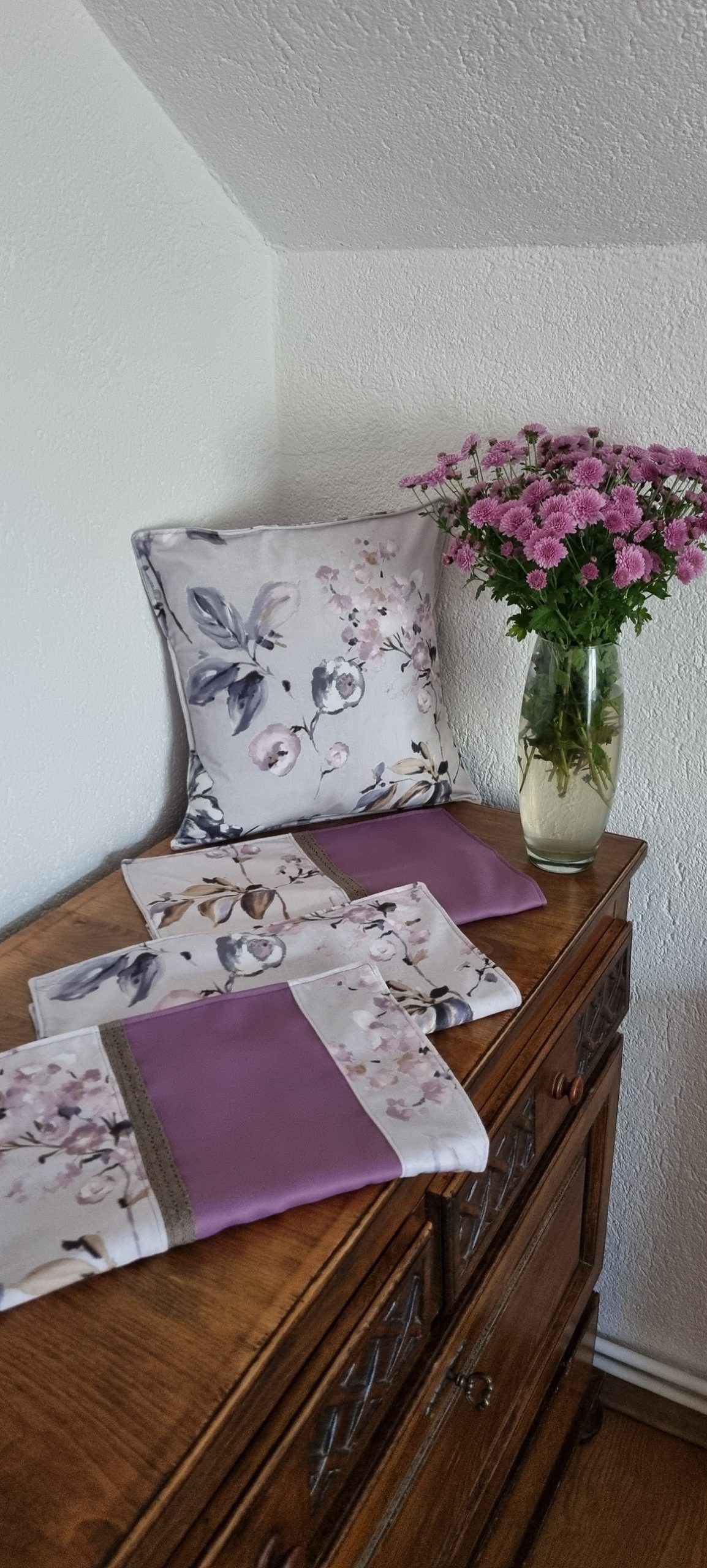 De teama sa nu gresesc suta la suta in alegerea cadoului oferit, am pregatit si un set de patru perne decorative din catifea, introducand si putin mai mult violet, la doua dintre ele, pentru a o bucura negresit!