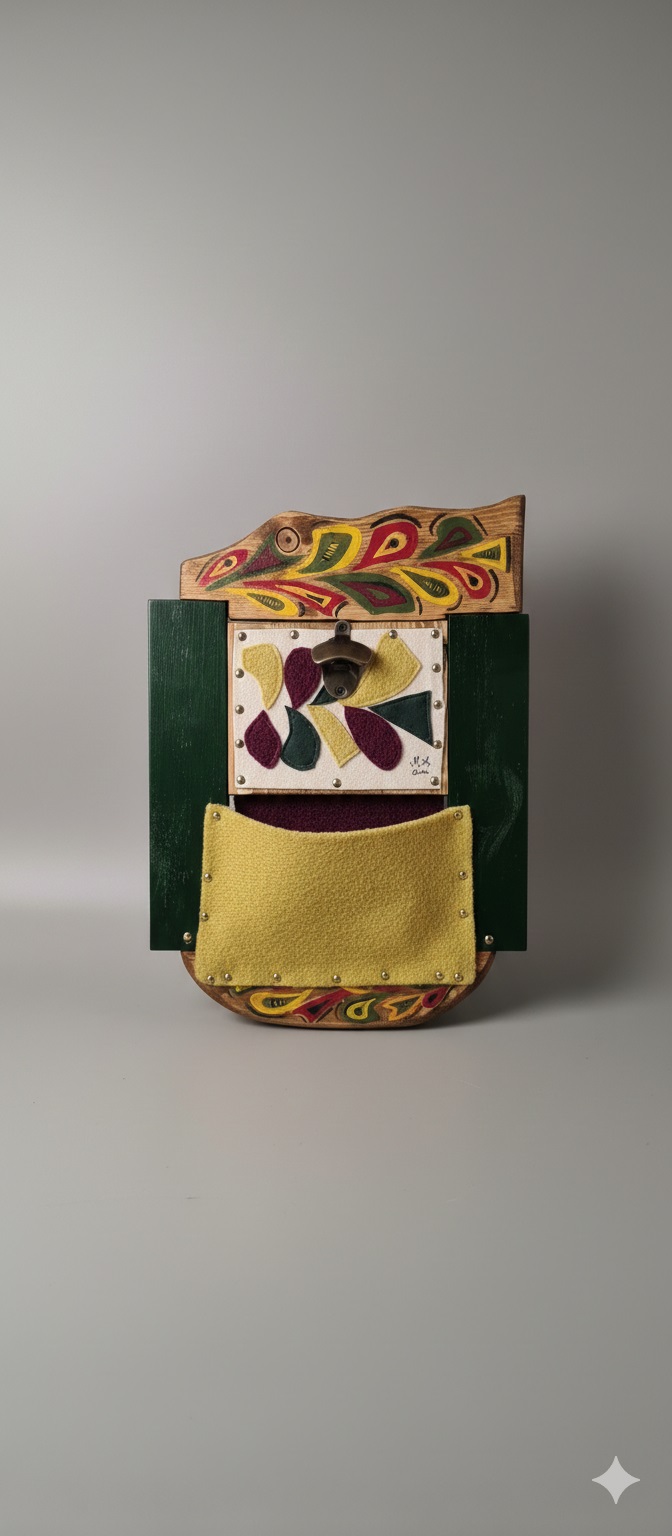 Eu il vad asemeni unui tablou. Insa, este un deschizator de sticle artizanal, de fixat pe o suprafata solida, cu spatiu de colectare al capacelor generos!