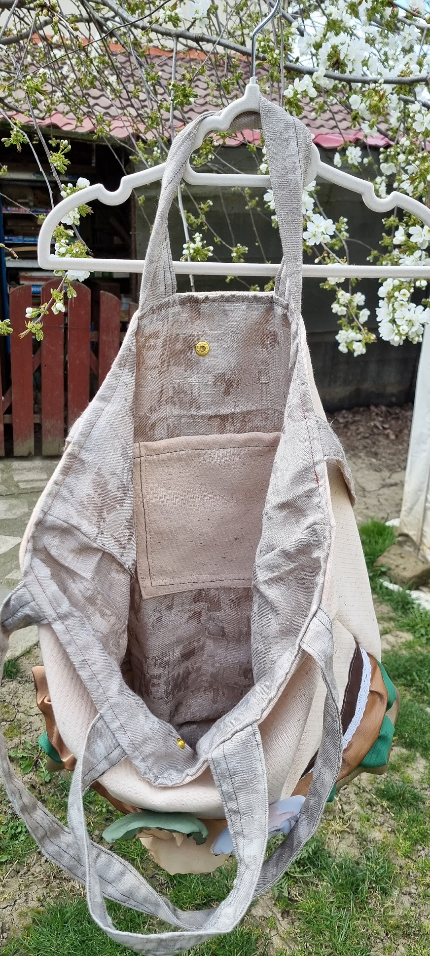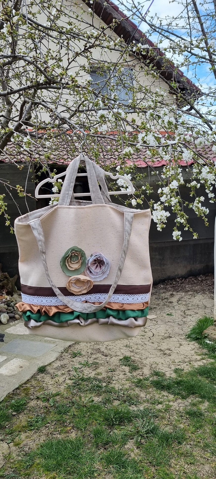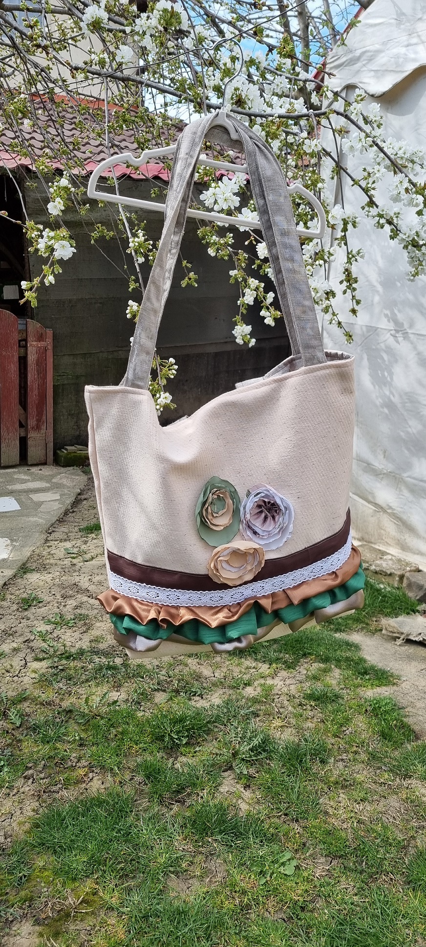De dimensiuni generoase, prevazuta cu 2 bretele lungi, de umar, dar si cu 2 bretele scurte, de mana, are in interior doua buzunare mari si inchidere prin capsa. Cu volanase, dantelute si floricele, pentru ca fix asa mi-am imaginat-o!