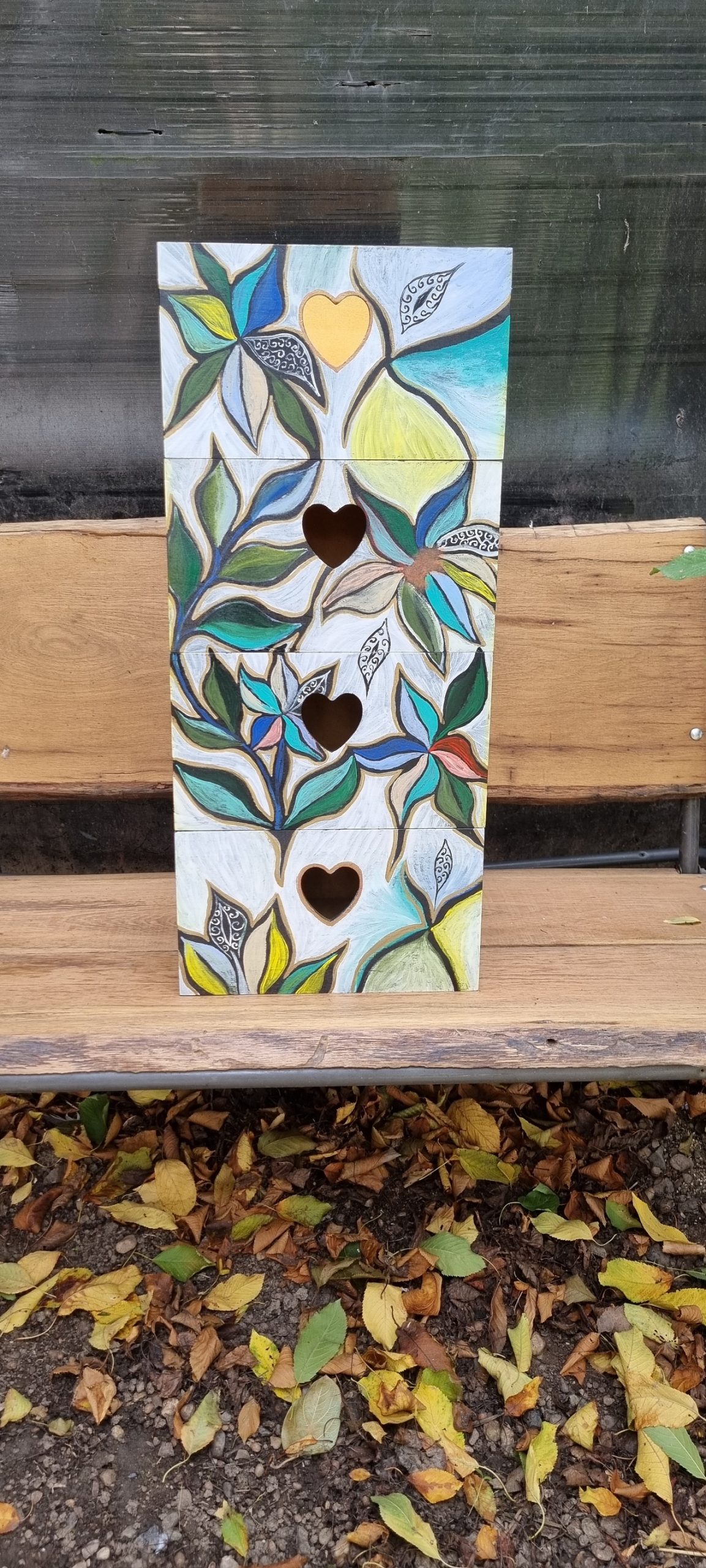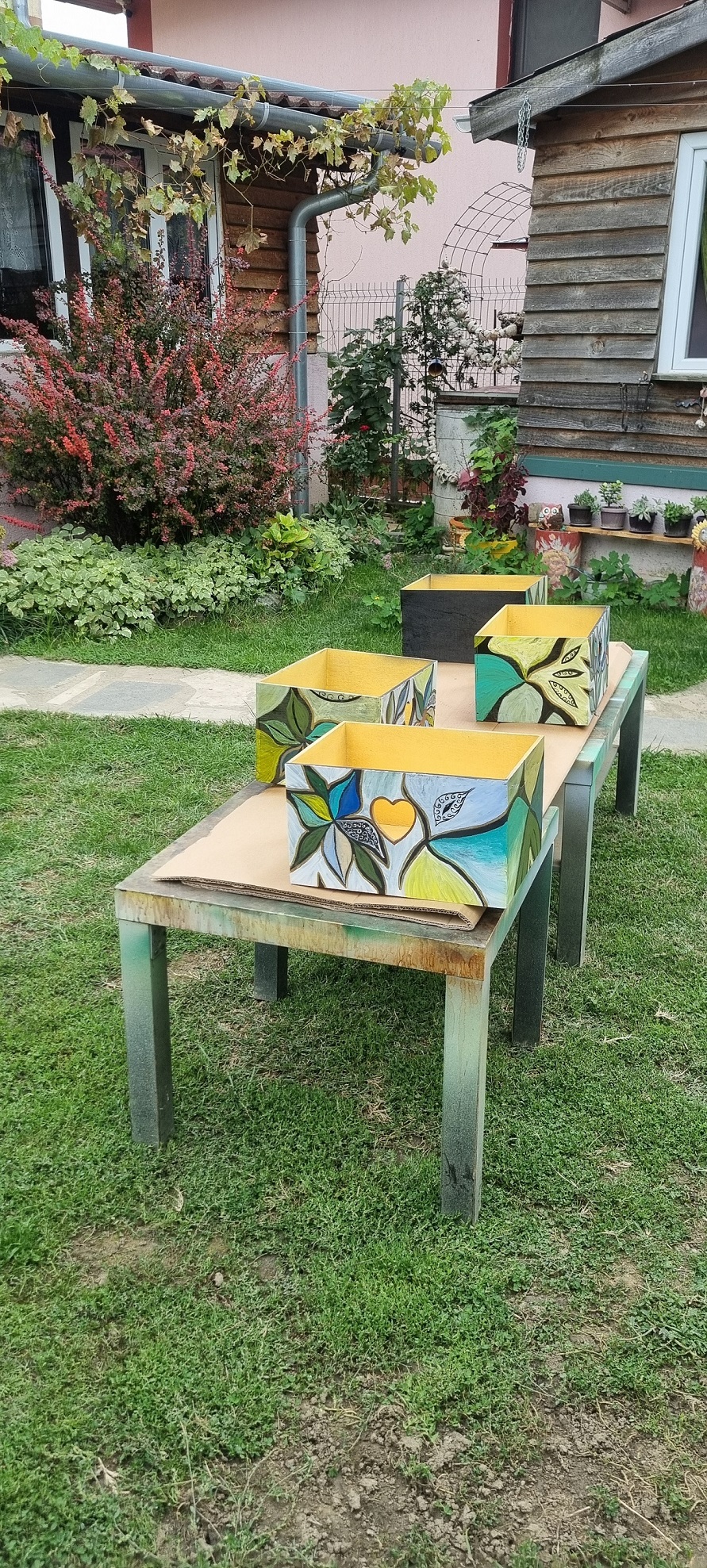 Au rezultat, asadar, 4 sertare ale unui raft, pictate manual, pe fond negru.