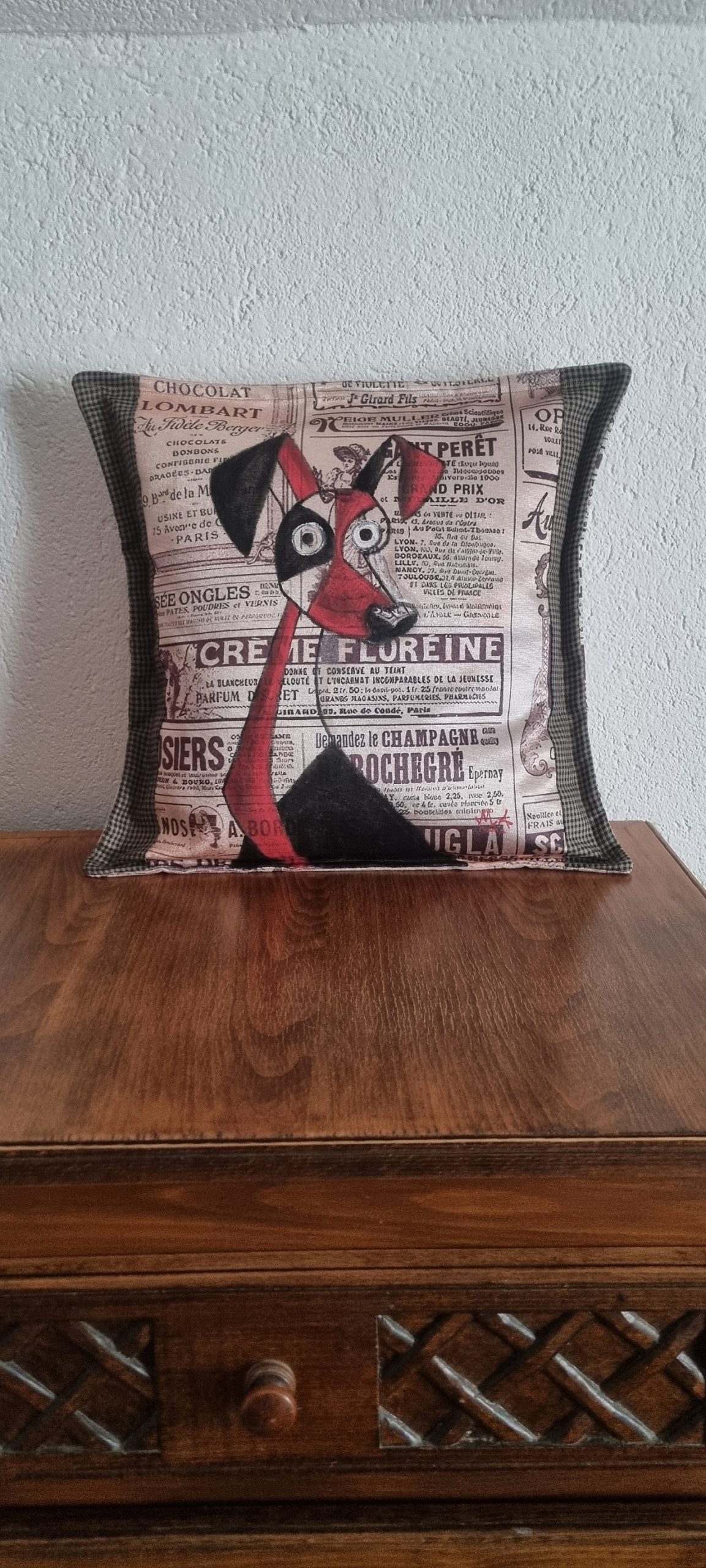 Dupa ce s-a uscat, dupa ce am stabilizat pigmentul, am cusut perna decorativa, o ultima fotografie si…plecata de urgenta! Nu de alta, dar Craciunul ne batea in geam si era musai ca ea sa ajunga sub brad!