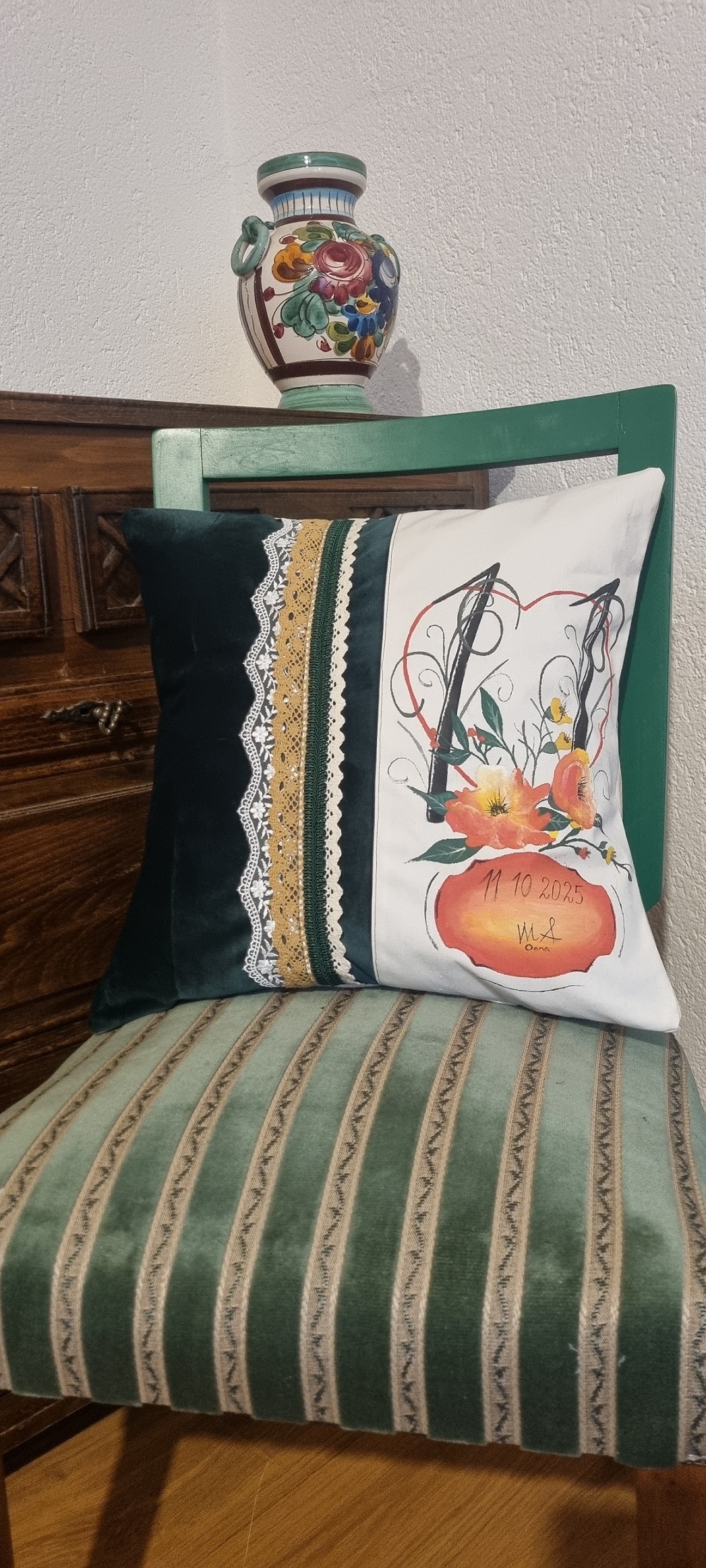 O data memorabila pentru un cuplu deosebit mi-a dat ocazia sa pot lucra o noua perna decorativa pictata manual.