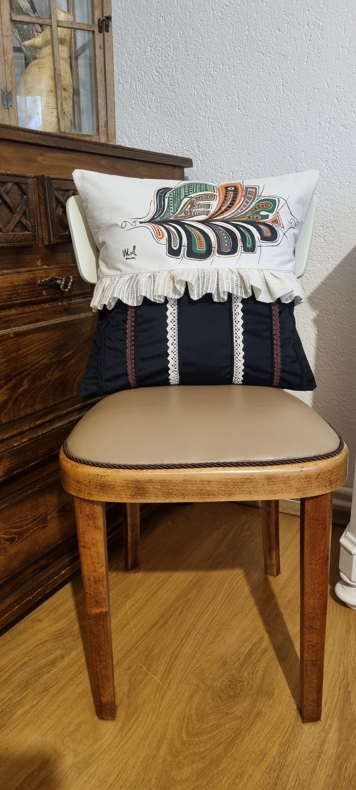 Am vrut, cu tot dinadinsul, sa vad cum arata o perna decorativa pictata manual, cu un model abstract.