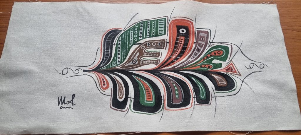 Am stabilit , ulterior, detaliile cromatice si….am adaugat inca o perna pictata manual pe lista mea!