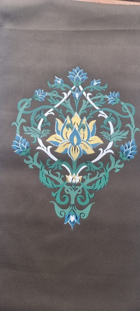 Astazi va arat o perna pictata manual cu un motiv traditional.