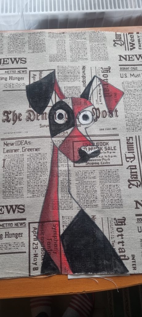 Am avut putere doar pentru un model simplu, de catel comic, pe care, initial, l-am confectionat din decupaj textil.