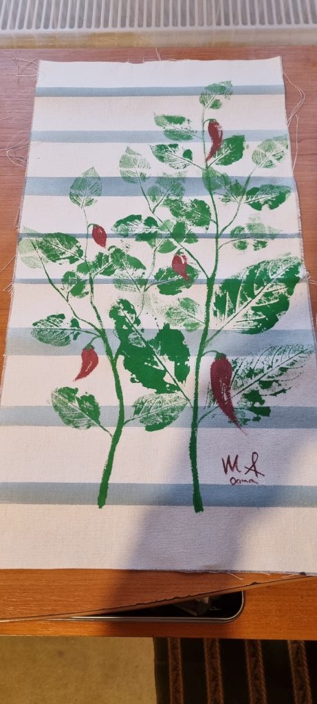 Una cu tema maritima – o pictura modesta a unui far, cealalta cu tema vegetala – pictura, cu ajutorul frunzelor de ardei iute, tocmai a unei plante de ardei iute!