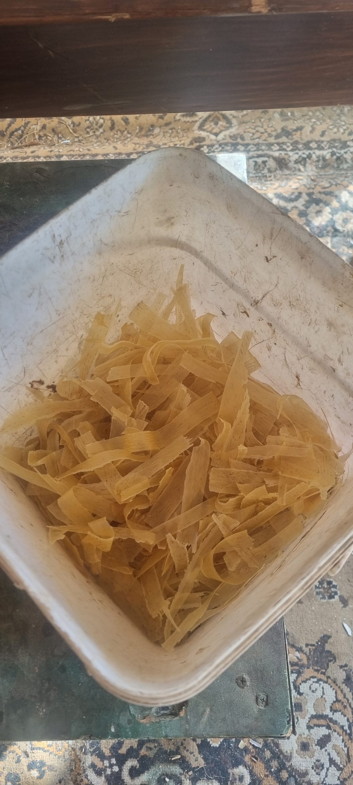 Pana sa ajung, insa, la o decizie finala in ceea ce o privea, trebuia sa-mi relaxez mintea cu ceva. Si am demarat curatarea finisajului existent. O oala de taietei perfecti a rezultat!