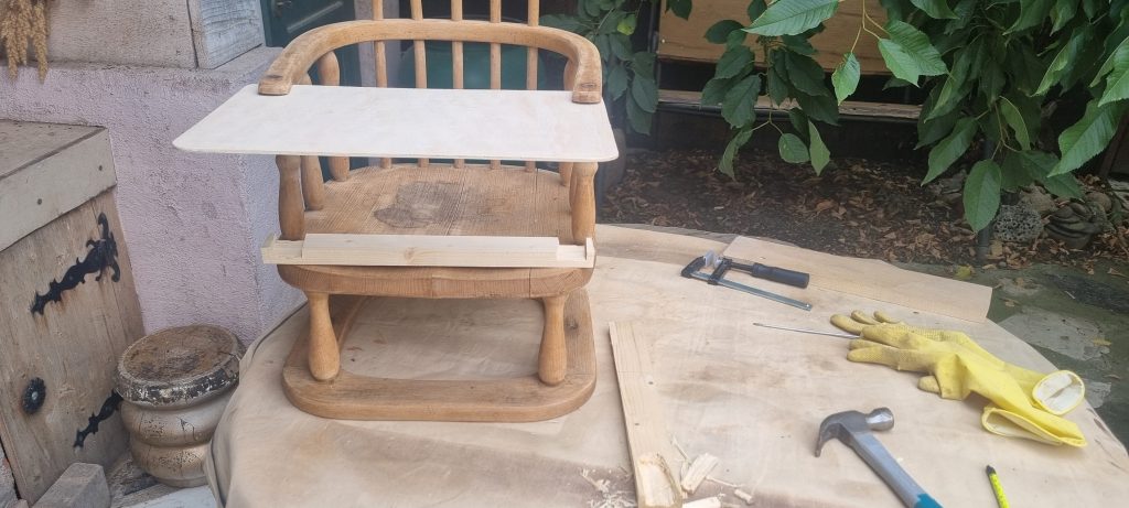 Asadar si prin urmare, iata rezultatul reconditionarii scaunului de masa pentru copii: