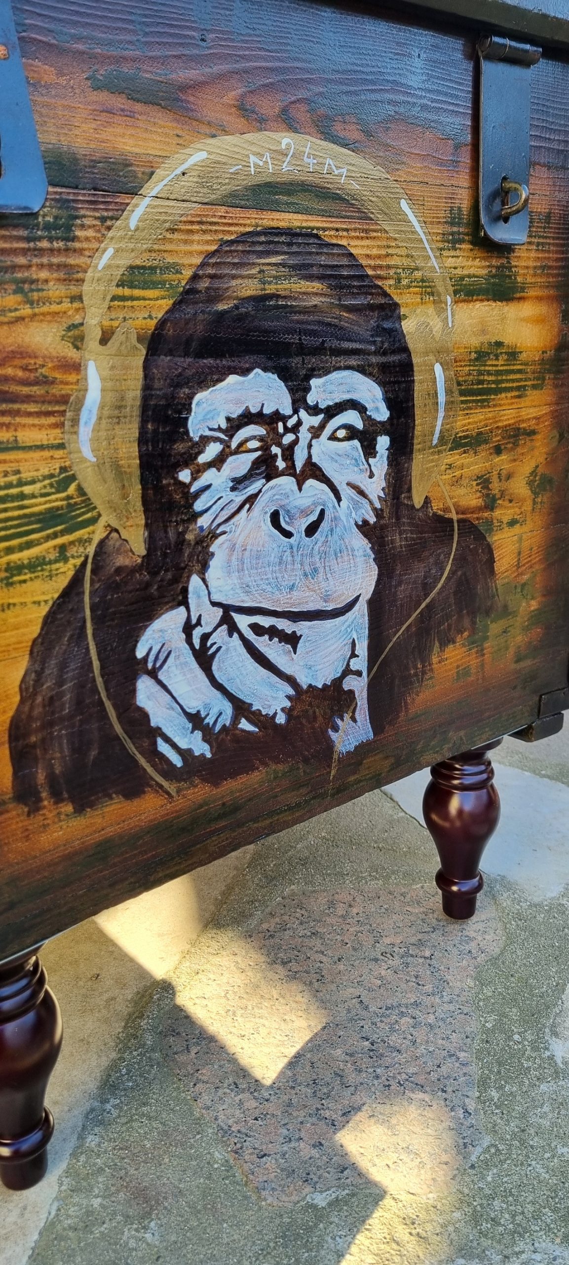 Si, cum la noi in familie maimuta are poveste lunga, inradacinata si deosebit de iubita ( dar nu intru in detalii acum), am decis sa-i pictez exact un chip de cimpanzeu.