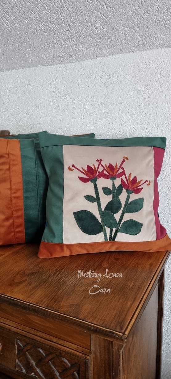 Am pornit de la ea, o perna decorativa facuta prin tehnica decupajului textil.