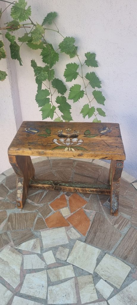 Scaunel vechi, din lemn, reconditionat. Mobilier personalizat.